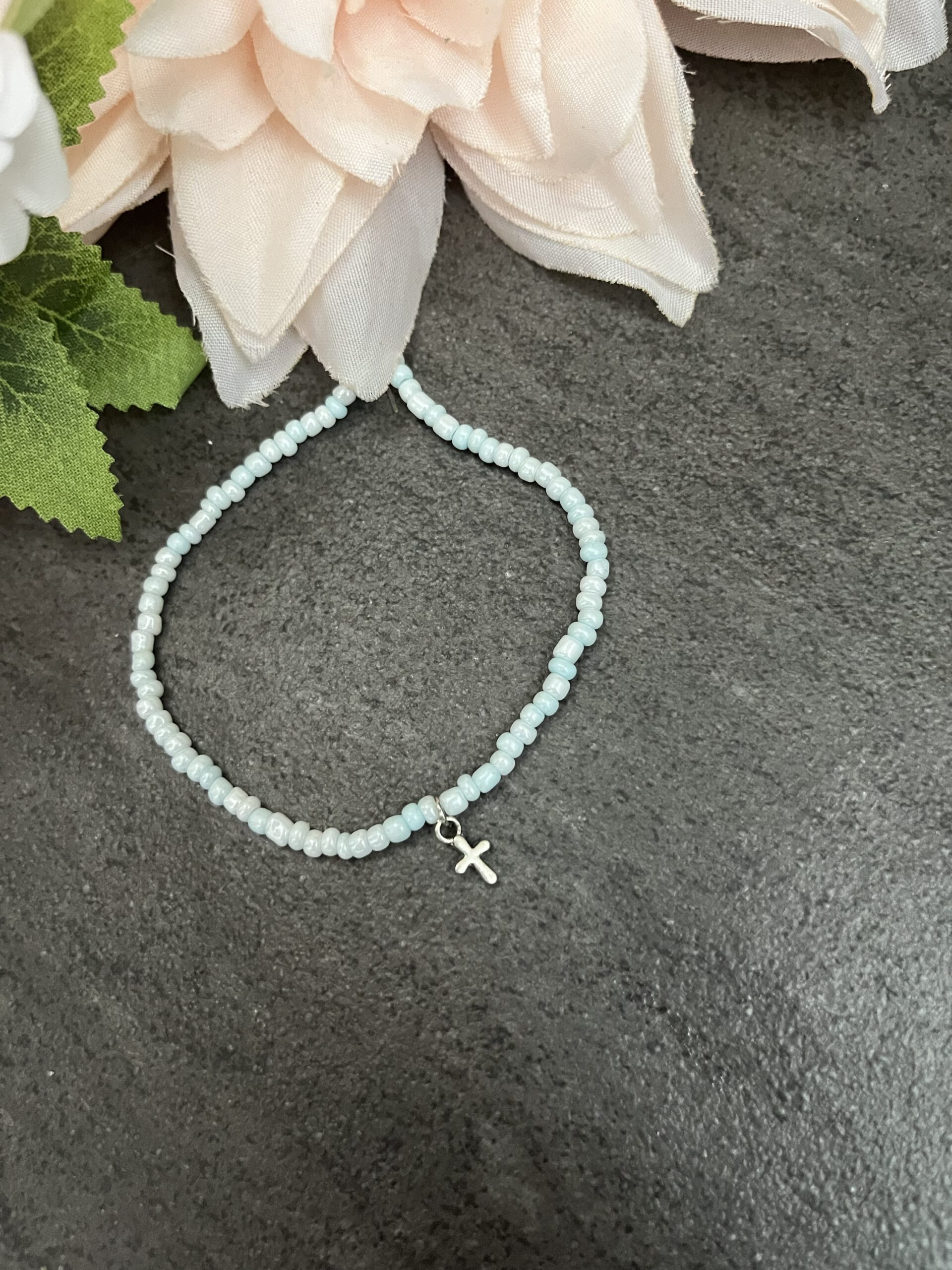 Hellblaues Armband mit Kreuz
